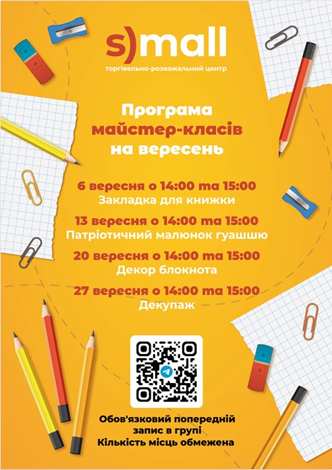 Майстер-класи у вересні в ТРЦ S)mall